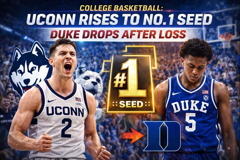 The University of Connecticut men’s basketball team climbs to the top seed in the NCAA rankings following a dominant run, while Duke University slips after a key loss late in the season. A shift in seeds could reshape the March Madness bracket and the road to the Final Four.